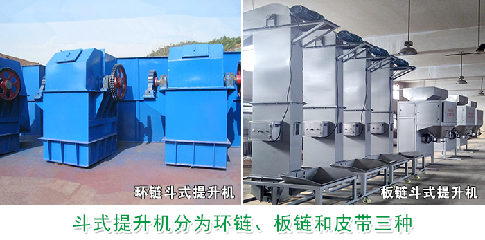 斗式提升機分為環鏈、板鏈和皮帶三種,根據所提升的物料選擇的料斗設計不同,其外形設計內部配置是不同的,環鏈式適用于輸送粉狀、小塊狀的物料,板鏈式適用于中、大塊和有磨琢性的物料,皮帶式適用于垂直輸送粉狀、且磨琢性較小的散狀物料,選擇不同種類的提升機造成價格上的差異化。