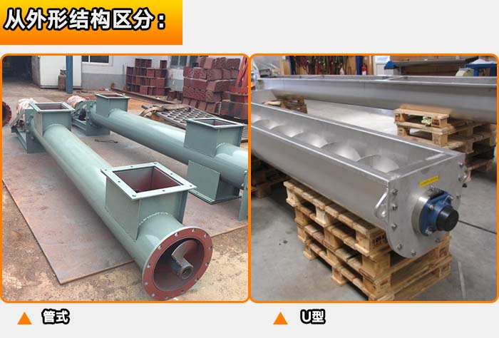 螺旋輸送機(jī)從外形結(jié)構(gòu)可分為:管式和U型的螺旋輸送機(jī)。