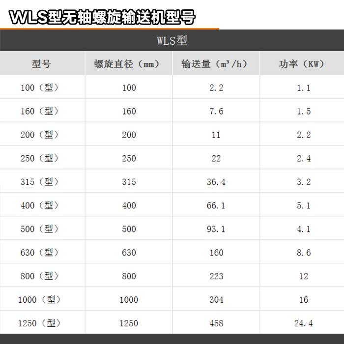 型號:LS型螺旋輸送機(jī)以管徑為型號:100mm,200mm,250mm,315mm,400mm,500mm,600mm等型號。