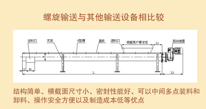 (3)螺旋輸送與其他輸送設(shè)備相比較,具有結(jié)構(gòu)簡(jiǎn)單、橫截面尺寸小、密封性能好、可以中間多點(diǎn)裝料和卸料、操作安全方便以及制造成本低等優(yōu)點(diǎn)。它的缺點(diǎn)是機(jī)件磨損較嚴(yán)重、輸送量較低、消耗功率大以及物料在運(yùn)輸過程易被破碎。
