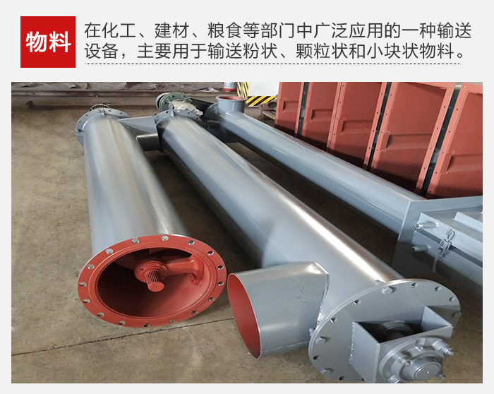 1、螺旋輸送機是在化工、建材、糧食等部門中廣泛應用的一種輸送設備,主要用于輸送粉狀、顆粒狀和小塊狀物料。它不適宜輸送易變質的、粘性的和易結塊的物料。