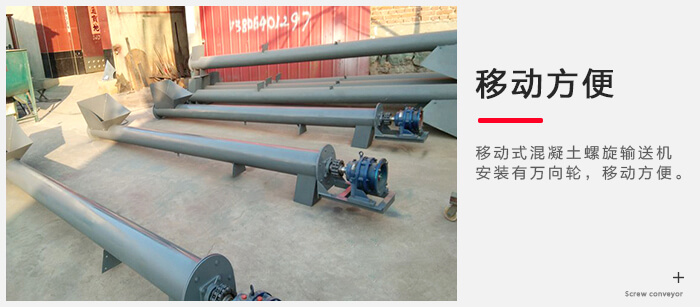 移動式混凝土螺旋輸送機(jī)安裝有萬向輪,移動方便