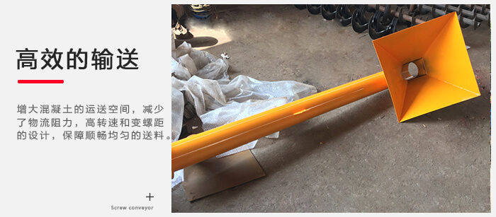 移動式螺旋輸送機(jī)采用新型懸掛式中間吊軸承架,增大混凝土的運(yùn)送空間,減少了物流阻力,加上小直徑,高轉(zhuǎn)速和變螺距的設(shè)計,保障順暢均勻的送料。