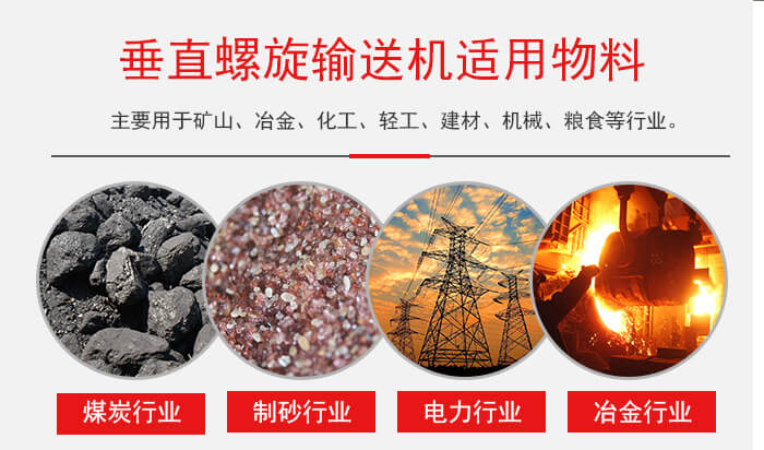 垂直螺旋輸送機主要用于礦山、冶金、化工、輕工、建材、機械、糧食等各行業垂直輸送50毫米以下的粉狀、顆粒狀、塊狀物料,在連續供料條件下也可用于輸送具有滾動性的團狀物料,可以代斗式提升機、傾斜使用皮帶運輸機等