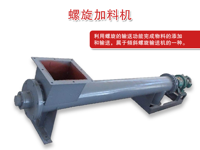螺旋加料機又稱螺旋喂料機,主要利用螺旋的輸送功能完成,物料的添加和輸送。改成被為傾斜螺旋輸送機的一種。