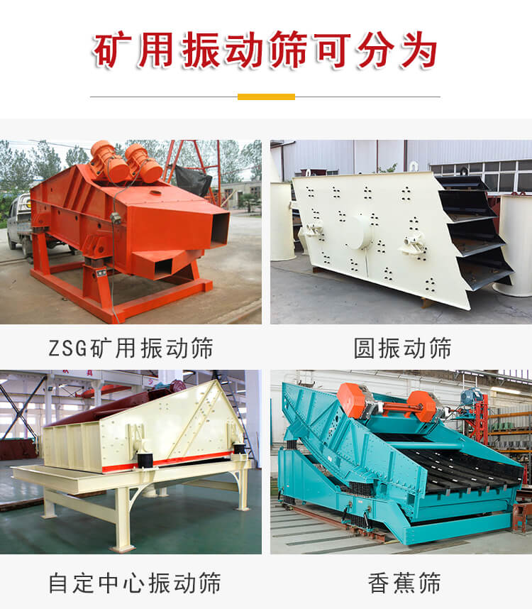 高效重型篩,自定中心振動篩,橢圓振動篩,脫水篩,圓振篩,香蕉篩,直線振動篩等。