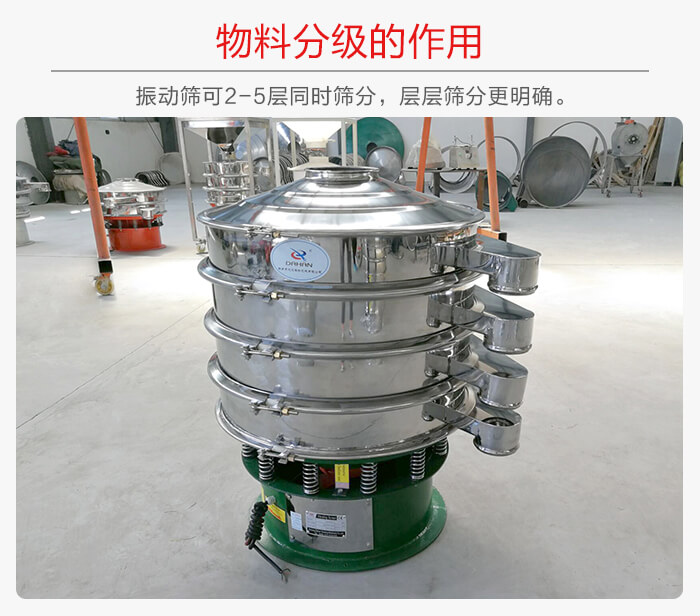 有些生產(chǎn)線中物料的粒徑并不是都是一樣的,粒徑是有很大不同的,利用振動篩設備可以將物料進行分級,按照粒徑大小分別篩分到不同的下一階段生產(chǎn)線中去,最高可以分6級,以實現(xiàn)更加精細化的生產(chǎn)活動。